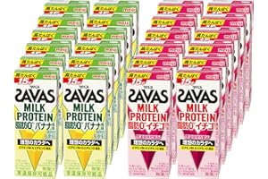 SAVAS(ザバス) MILK PROTEIN 脂肪0 24本アソートセット (イチゴ風味&バナナ風味) 200ml×各12本 ミルクプロテイン 15g 明治 【Amazon.co.jp限定】
