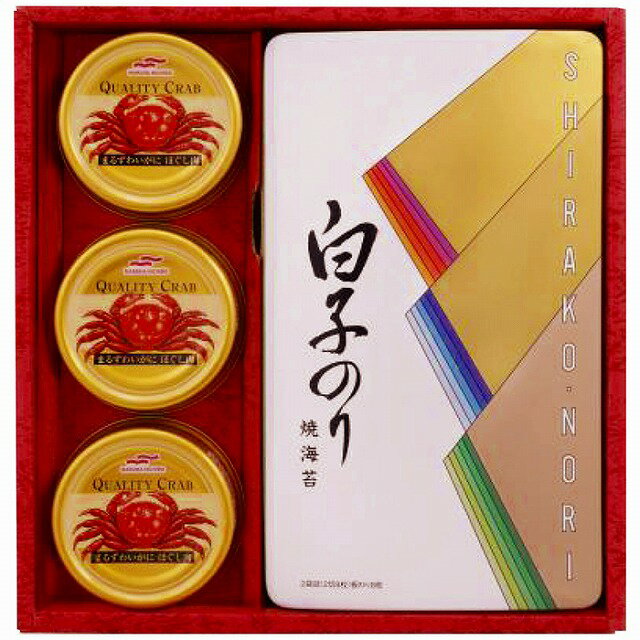 ●内容/焼のり(板のり2切8枚2袋)1缶・まるずわいがにほぐし肉55g×3缶●箱サイズ/25×6×23cm●原産国/日本製●賞味期間/製造日より常温約1080日●重量/650g●アレルゲン/かに