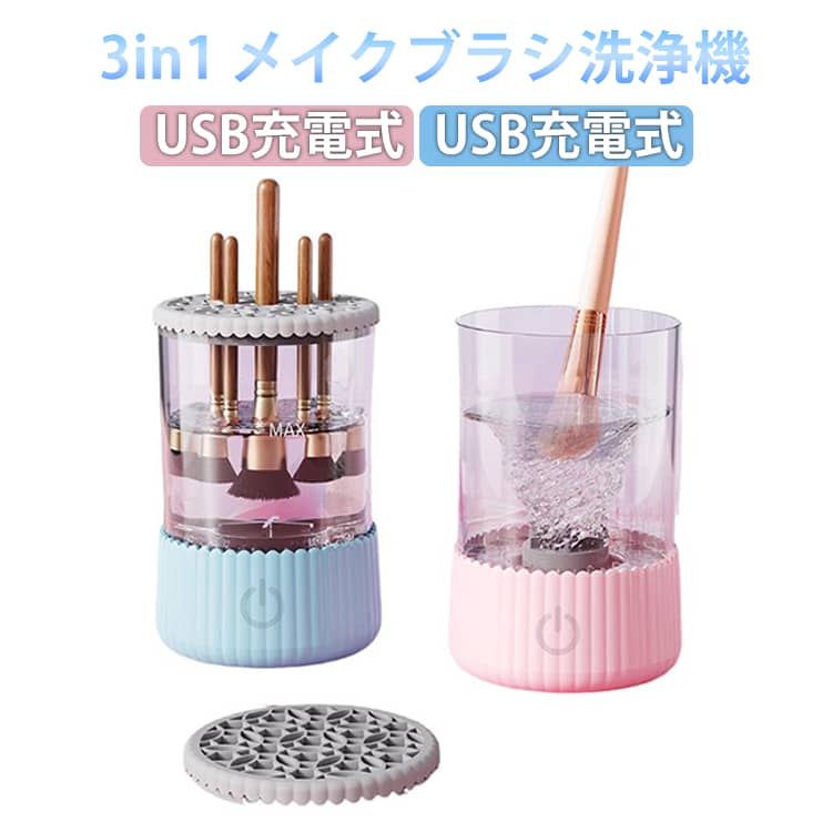 3in1 メイクブラシ洗浄機USB充電式紫外線除菌洗浄・乾燥・収納の3役がこれ1台メイクブラシのお手入れを、もっと簡単・清潔に。洗って・乾かして・収納まで完結する3in1設計です。毎分7,000回転の強力洗浄高速回転で、手洗いでは落としにくいブラシの奥の汚れやメイク残りをしっかり除去。短時間でもムラなくスッキリ洗い上げます。紫外線除菌で清潔キープ洗浄後は紫外線除菌で雑菌の繁殖を抑え、清潔な状態を保ちます。肌に直接触れるブラシだから、衛生面も安心。スタンド一体型でそのまま乾燥・収納洗浄後はフタをスタンドとして使用し、そのまま自然乾燥。使わない時はブラシスタンドとして保管でき、ホコリも防げます。USB充電式で手軽に使用コードレスで場所を選ばず、自宅でも外出先でも使いやすい設計。 サイズ F サイズについての説明 15x9.5cm 素材 ABC PC TPE 色 ピンク ブルー 備考 ●サイズ詳細等の測り方はスタッフ間で統一、徹底はしておりますが、実寸は商品によって若干の誤差(1cm?3cm )がある場合がございますので、予めご了承ください。 ●製造ロットにより、細部形状の違いや、同色でも色味に多少の誤差が生じます。 ●パッケージは改良のため予告なく仕様を変更する場合があります。 ▼商品の色は、撮影時の光や、お客様のモニターの色具合などにより、実際の商品と異なる場合がございます。あらかじめ、ご了承ください。 ▼生地の特性上、やや匂いが強く感じられるものもございます。数日のご使用や陰干しなどで気になる匂いはほとんど感じられなくなります。 ▼同じ商品でも生産時期により形やサイズ、カラーに多少の誤差が生じる場合もございます。 ▼他店舗でも在庫を共有して販売をしている為、受注後欠品となる場合もございます。予め、ご了承お願い申し上げます。 ▼出荷前に全て検品を行っておりますが、万が一商品に不具合があった場合は、お問い合わせフォームまたはメールよりご連絡頂けます様お願い申し上げます。速やかに対応致しますのでご安心ください。