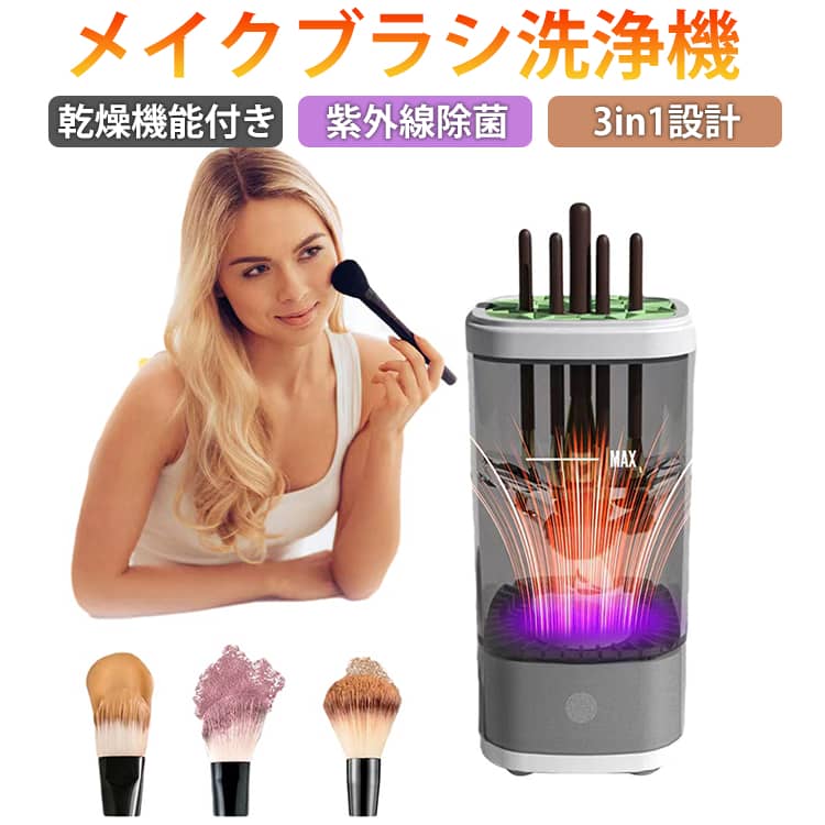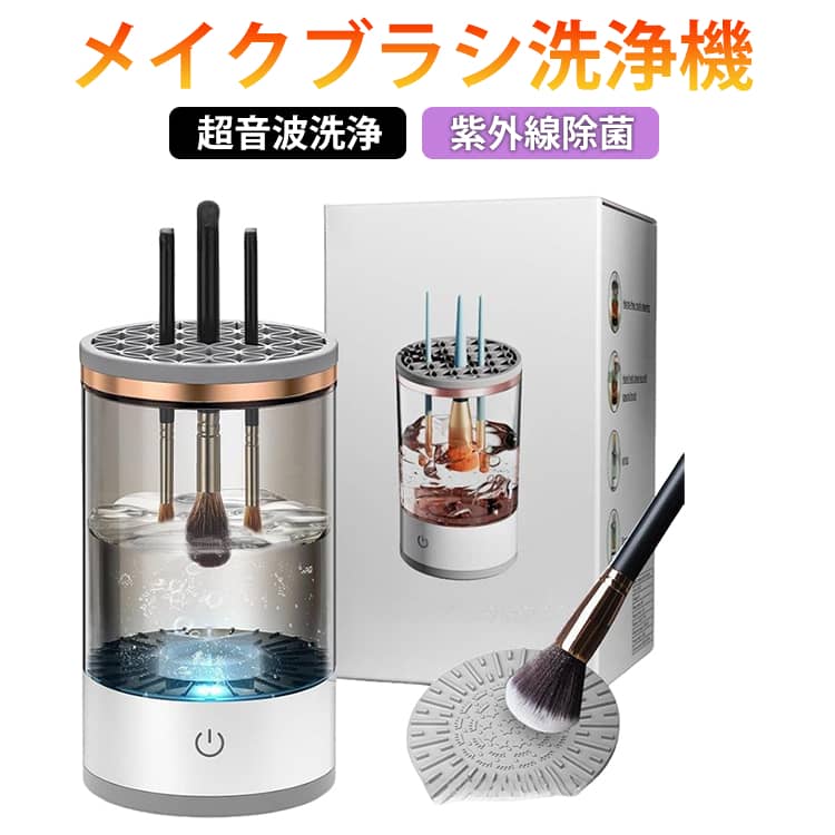 メイクブラシ洗浄機乾燥機能付き紫外線除菌3in1設計洗浄・乾燥・収納がこれ1台メイクブラシのお手入れが、この1台で完結。洗浄・乾燥・収納の3機能を備えた便利なメイクブラシ洗浄機です。毎分6,500回転の強力洗浄高速回転でブラシの奥に入り込んだファンデーションや皮脂汚れをしっかり除去。手洗いでは落としにくい汚れもスピーディーに洗浄します。紫外線乾燥で清潔キープ洗浄後は紫外線除菌+温風乾燥でしっかり乾燥。雑菌の繁殖を抑え、肌トラブル対策にも◎約35分で自動乾燥が完了します。そのまま収納できるスタンド機能乾燥後はブラシスタンドとしてそのまま収納可能。ホコリを防ぎ、清潔な状態で保管できます。複数ブラシに対応一度に複数のブラシを洗浄できるので、忙しいメイク時間の時短に最適。【タッチ操作】・1回タッチ:強力洗浄・2回タッチ:乾燥機能 サイズ F サイズについての説明 8.1x8.1x16.5cm 素材 ABC PC TPE 色 ホワイト グレー ブラック 備考 ●サイズ詳細等の測り方はスタッフ間で統一、徹底はしておりますが、実寸は商品によって若干の誤差(1cm?3cm )がある場合がございますので、予めご了承ください。 ●製造ロットにより、細部形状の違いや、同色でも色味に多少の誤差が生じます。 ●パッケージは改良のため予告なく仕様を変更する場合があります。 ▼商品の色は、撮影時の光や、お客様のモニターの色具合などにより、実際の商品と異なる場合がございます。あらかじめ、ご了承ください。 ▼生地の特性上、やや匂いが強く感じられるものもございます。数日のご使用や陰干しなどで気になる匂いはほとんど感じられなくなります。 ▼同じ商品でも生産時期により形やサイズ、カラーに多少の誤差が生じる場合もございます。 ▼他店舗でも在庫を共有して販売をしている為、受注後欠品となる場合もございます。予め、ご了承お願い申し上げます。 ▼出荷前に全て検品を行っておりますが、万が一商品に不具合があった場合は、お問い合わせフォームまたはメールよりご連絡頂けます様お願い申し上げます。速やかに対応致しますのでご安心ください。